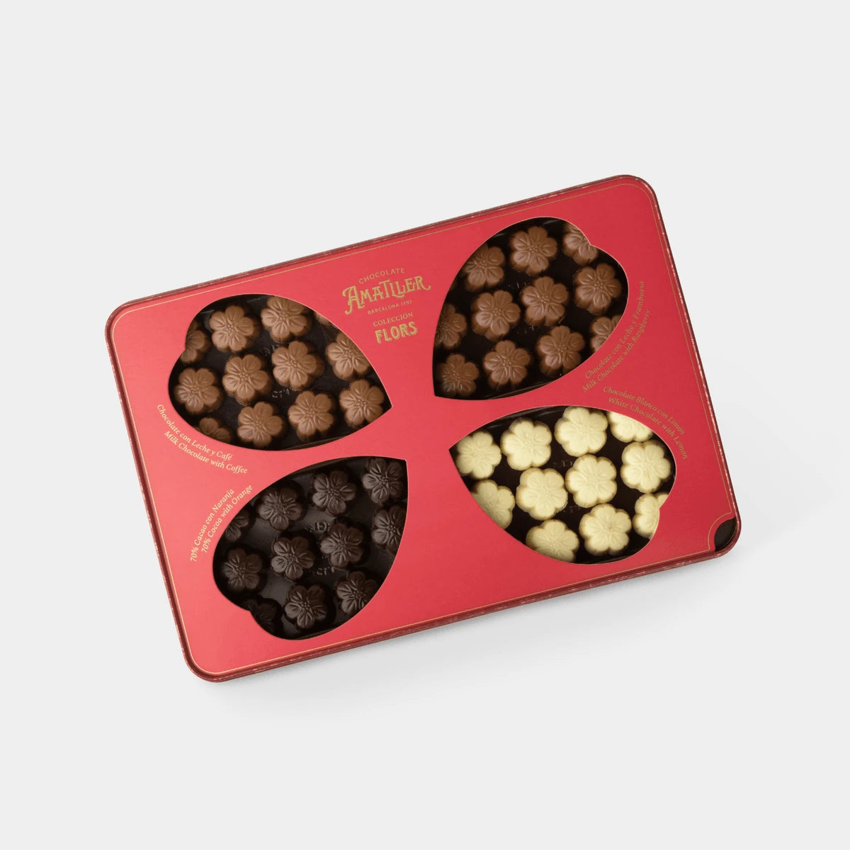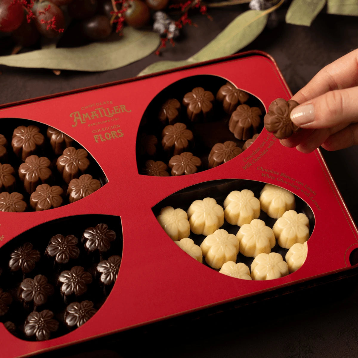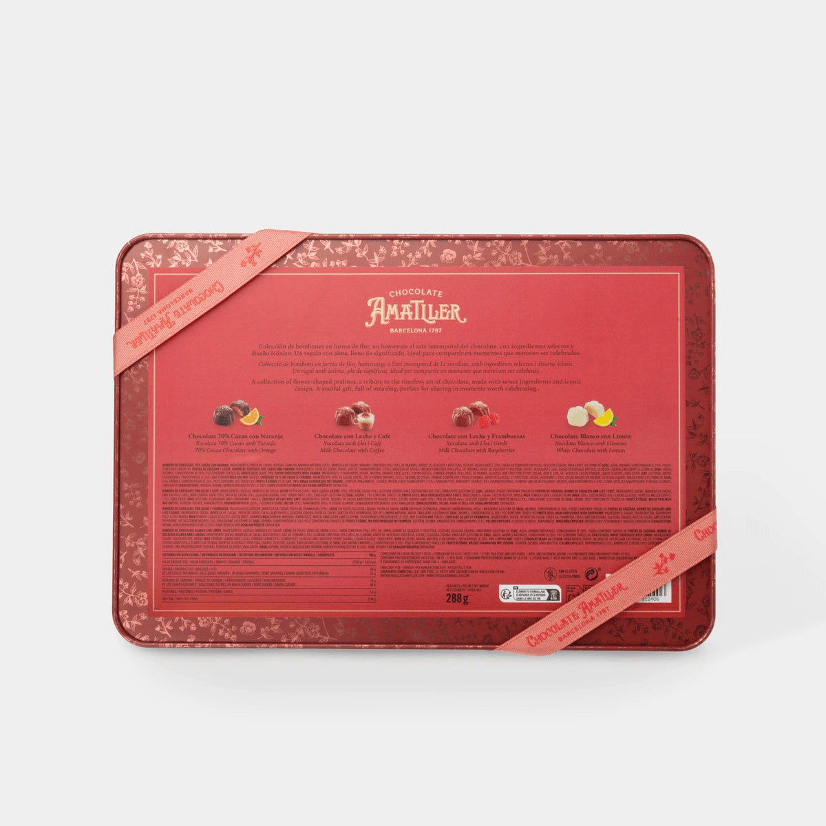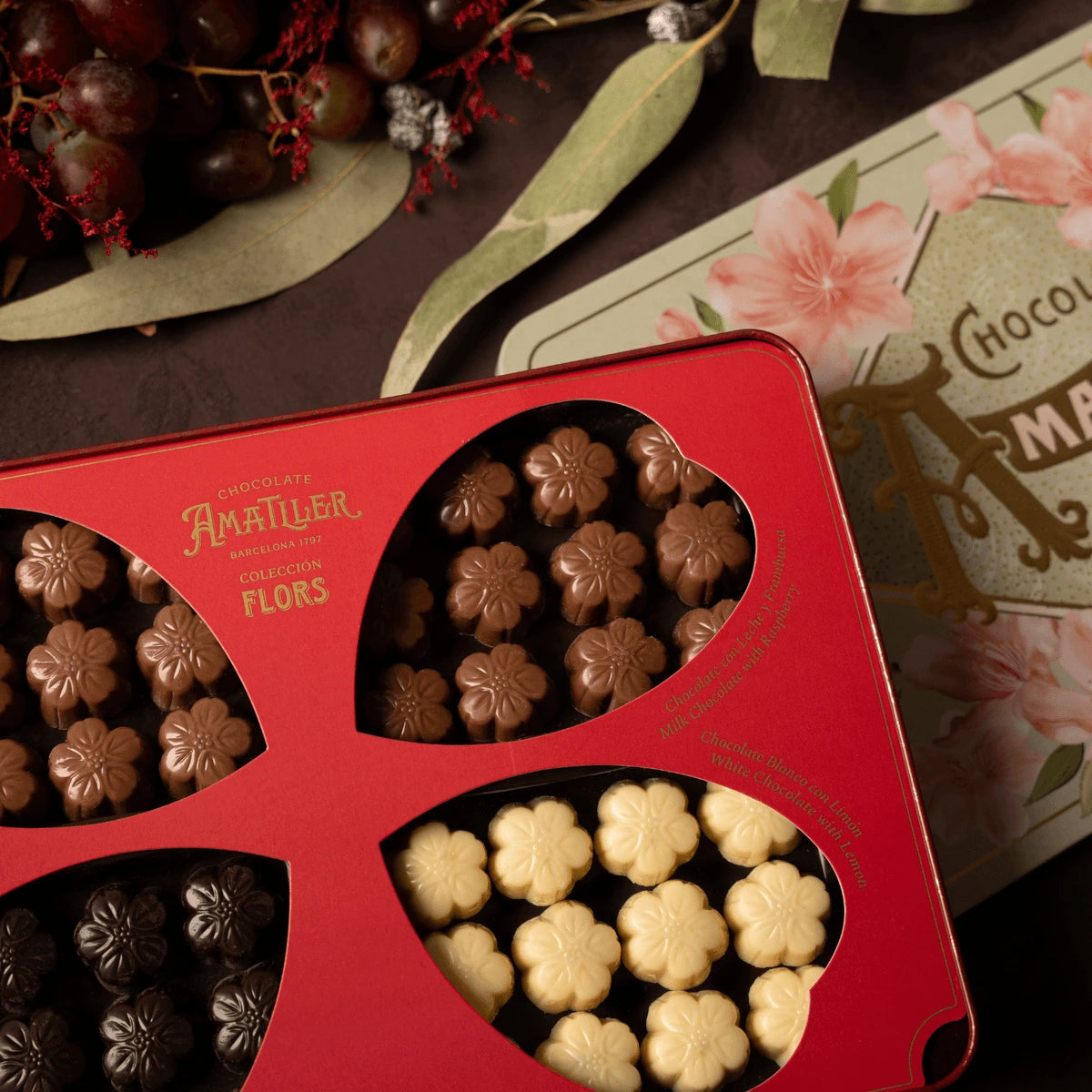 La Colección Lata Surtida Flors 288 g es ese detalle que hace que la sobremesa pase de correcta a memorable. Una lata metálica con motivos florales al más puro estilo Amatller: elegante, con presencia y sin necesidad de envoltorios extra. Se coloca en el centro de la mesa y automáticamente marca el tono: hay intención, hay estilo y hay buen gusto.