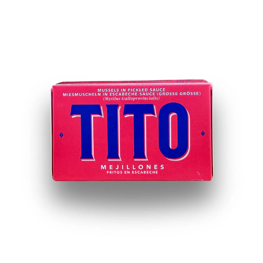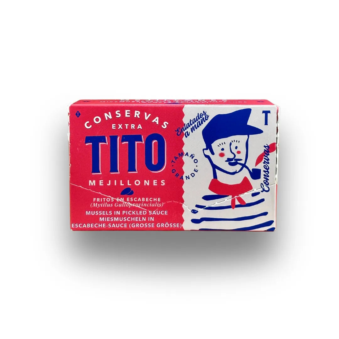 Grandes, jugosos y con carácter. Mejillones Extra Tito fritos en escabeche, criados en la Ría de Arousa y enlatados a mano. Puro vicio del bueno.